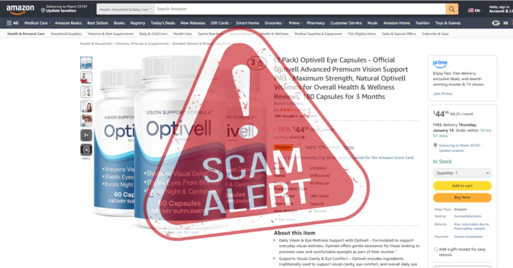 We do not recommend ordering OptiVell on Amazon, Walmart, or eBay because all of them are fake with completely different ingredients, and it can be very dangerous for you.