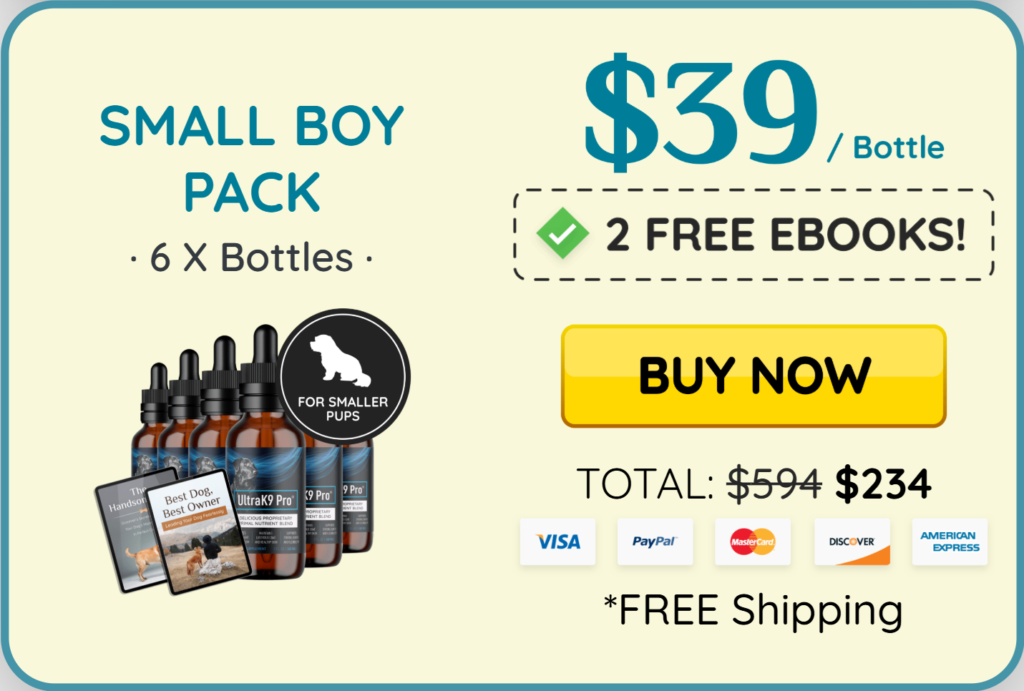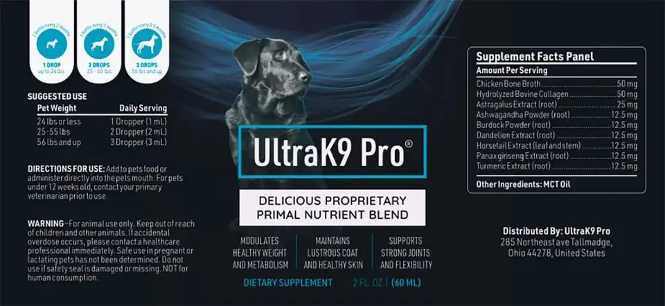 The recommended dosage of UltraK9 Pro varies depending on your dog’s size. For small dogs, just a few drops added to their food or water is sufficient, while larger dogs may require a slightly higher dose. Always refer to the product packaging for precise instructions.