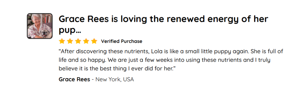 Many dog owners start noticing improvements in their pet’s health, such as increased energy and better joint mobility, within 2 to 4 weeks of continuous use. However, results may vary depending on your dog’s health condition.