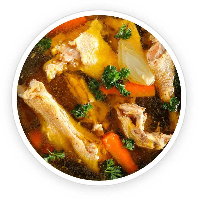 Rich in collagen, chicken bone broth is excellent for joint regeneration, helping relieve joint pain and improving mobility. It also contains essential amino acids and minerals that benefit the overall health of the body.