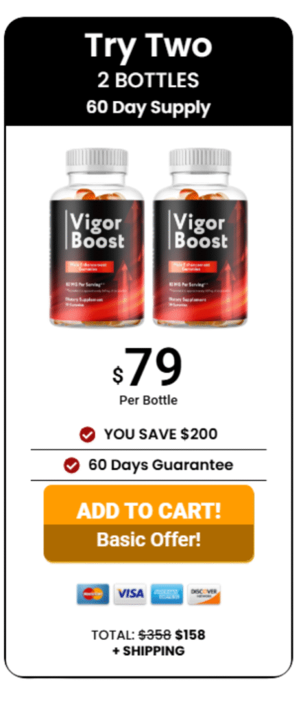 Vigor Boost is a natural supplement designed to enhance male vitality, energy, focus, and hormonal balance. It’s made with high-quality ingredients and contains no artificial compounds.